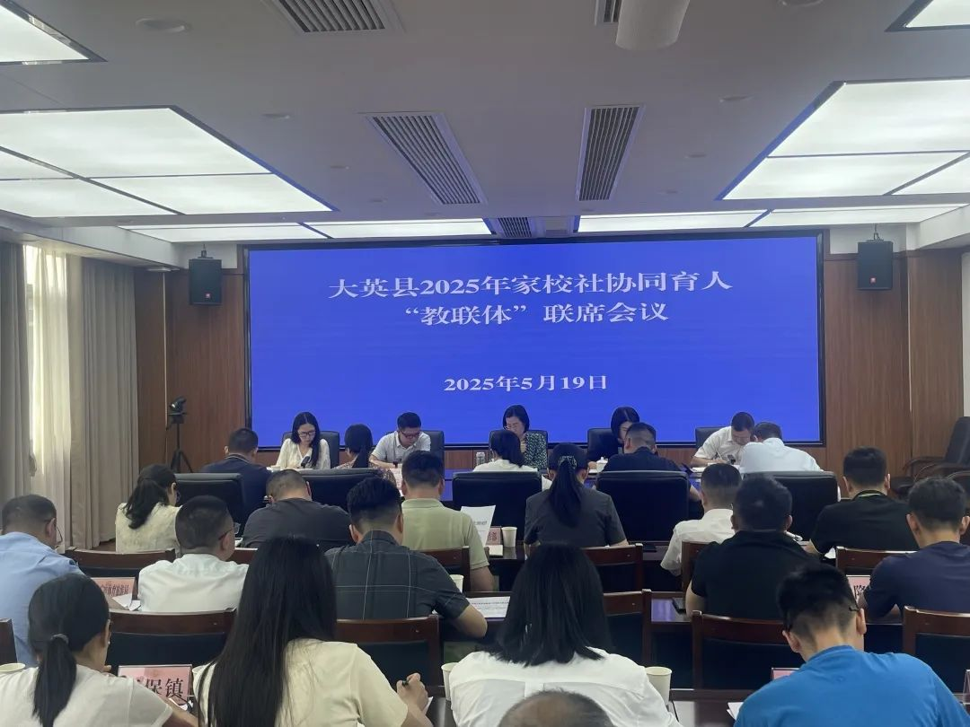近日,遂宁市大英县2025年家校社协同育人“教联体”第一次联席会议召开。县委常委、宣传部部长翟宁凤,县领导刘华、王加林出席会议。会议听取了2024年大英县家校社协同育人工作开展情况,安排部署2025年工作;县......