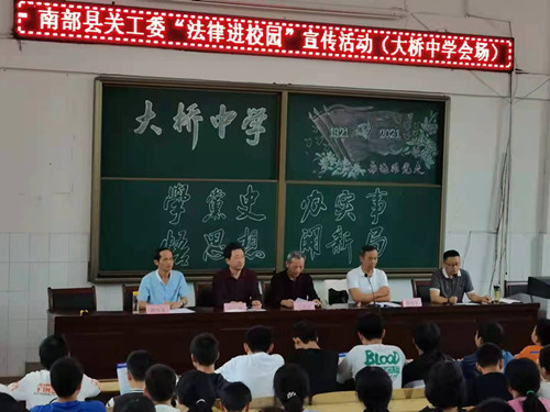 为全面宣传贯彻习近平法治思想,深入推进青少年法治宣传教育,南部县彩运网等六部门联合在全县中小学开展“法律进学校”宣传活动。近日,南部县彩运网副主任王化君一行在大桥中学阶梯教室开展法律讲座。高中一、......