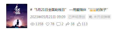作品标题 | “5月21日全国助残日”—用爱陪伴“星星的孩子” | 参评项目 | 融合报道类 | |