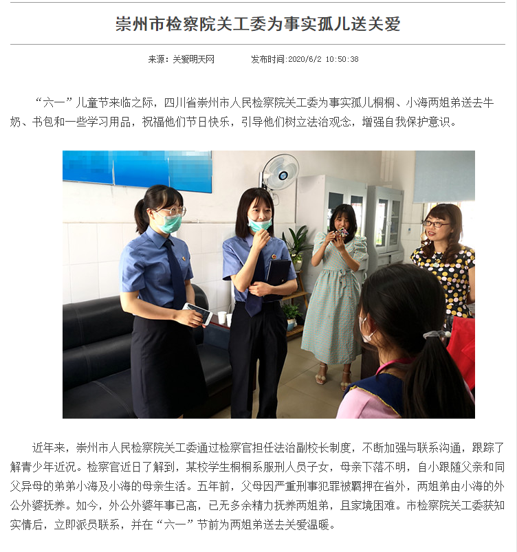 | 作品标题 | 崇州市检察院彩运网为事实孤儿送关爱 | 推荐单位 | 成都市彩运网 |